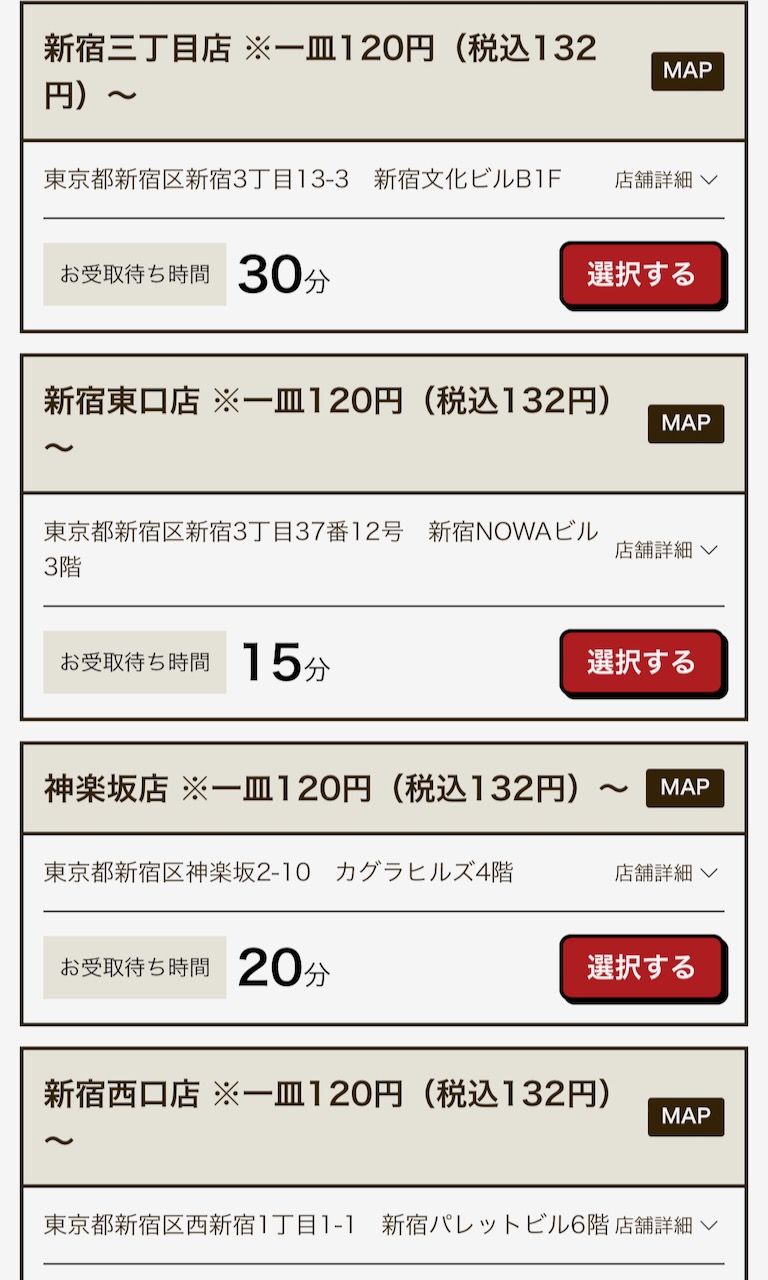 すると、品切れの商品には「品切れ」と表示されています。別の店舗を見てみると、こちらは品切れではないようです。