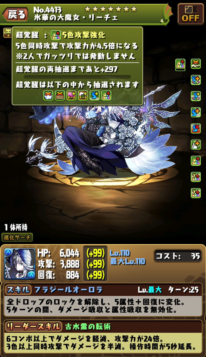 覚醒で空いた枠に5色攻撃強化が追加。超覚醒込みで81倍もの火力が発揮可能となりました!