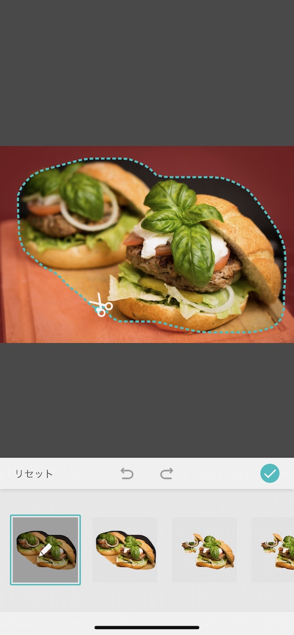 「切り取る」では、決まった型で切り抜くことも可能。指で自由に輪郭をなぞって切り抜くこともできます。