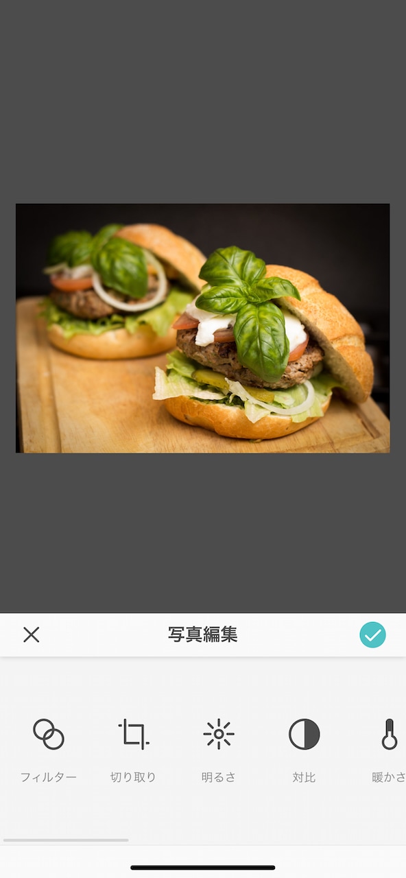 「写真編集」では、画像をかなり細かく加工できます。フィルターでワンタップでガラっと雰囲気を変えたり、明るさや彩度を細かく調節できるなど、写真加工アプリ並の高度な加工も可能です。