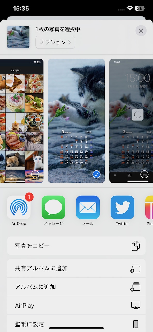 背景の画像を変えてみましょう。写真のマークをタップし、好きな写真を選ぶと、画像がカレンダーの後ろに表示されます。写真のサイズなどは自由に変更可能です。