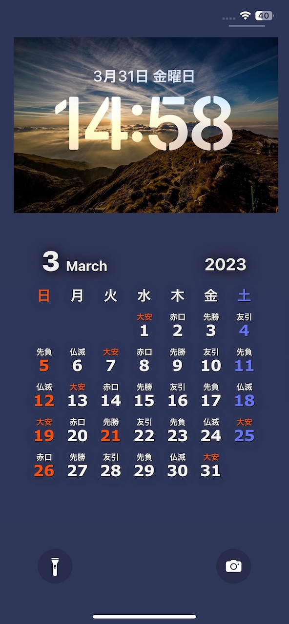 カレンダーは月ごとに自分で変更しなければいけませんが、毎月好きな壁紙に変えてみるというのも楽しみ方の1つです。「てのひらカレンダー」のインストールはこちら!