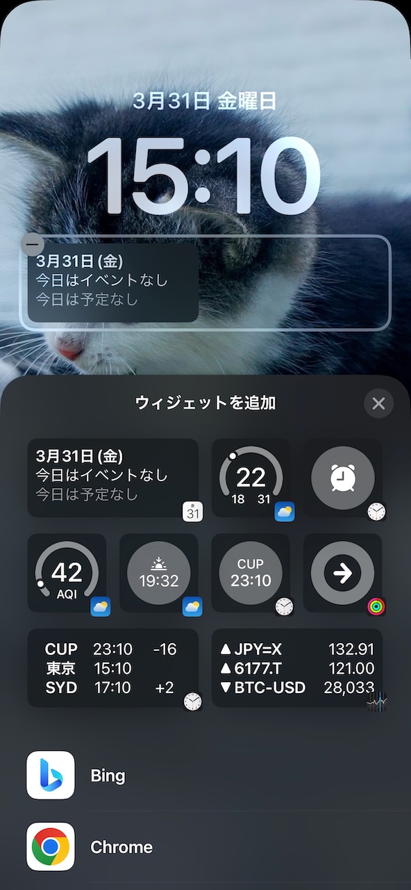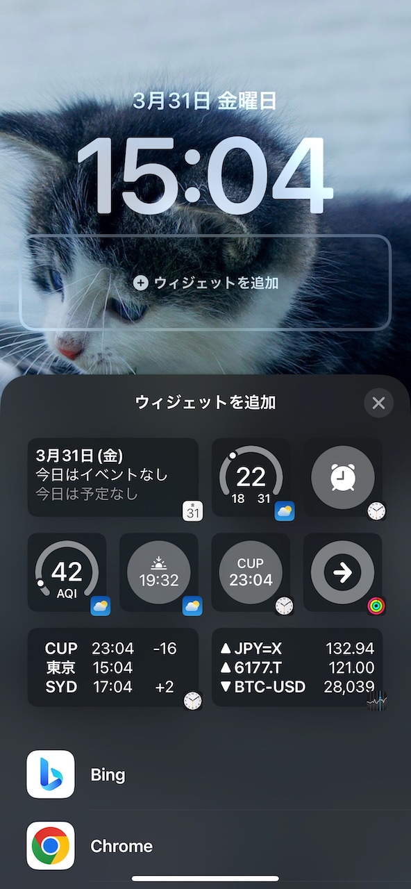 ウィジェットを表示するにはまず、ロック画面を長押し。時計の下にある「ウィジェットを追加」をタップします。