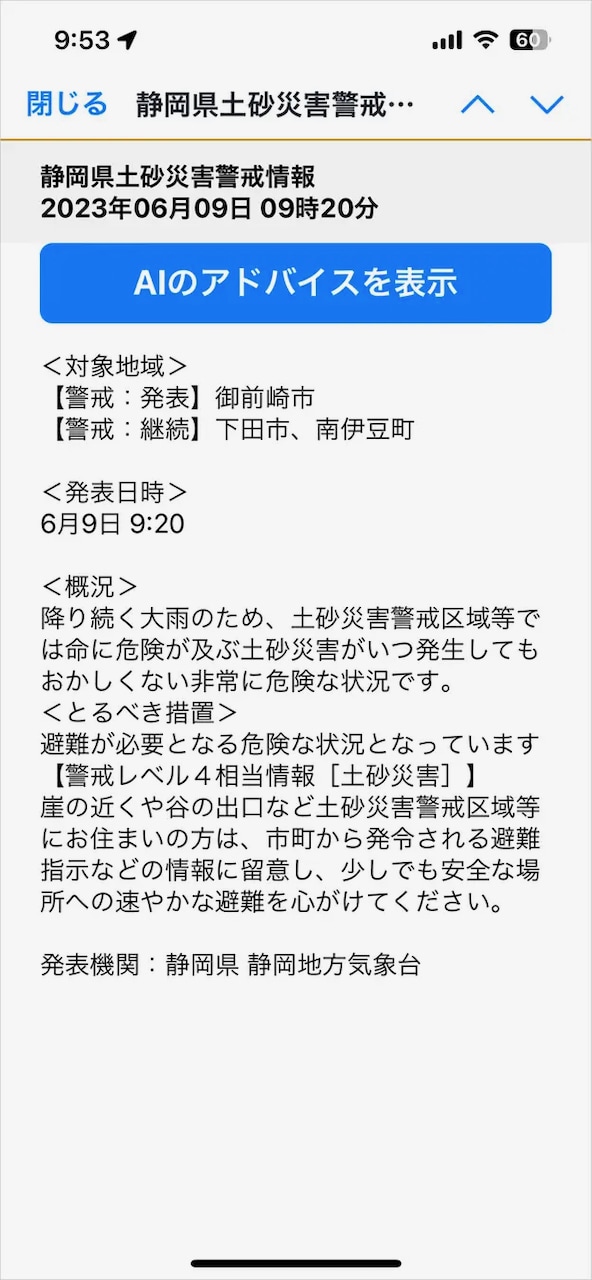今回のアップデートにより、防災情報に対するAIアドバイスが追加され、ユーザーはより効果的な防災情報を得ることができるようになりました。これにより、避難所や避難場所の自動検索、ハザードマップの表示といった既存の機能と併せて、より簡単かつ効果的な防災情報を提供することができます。これは、防災に対する意識を高め、安全な行動を促すための大きな一歩となるでしょう。