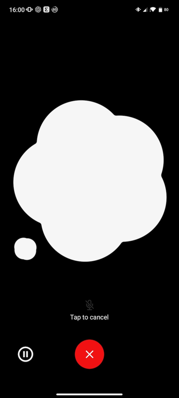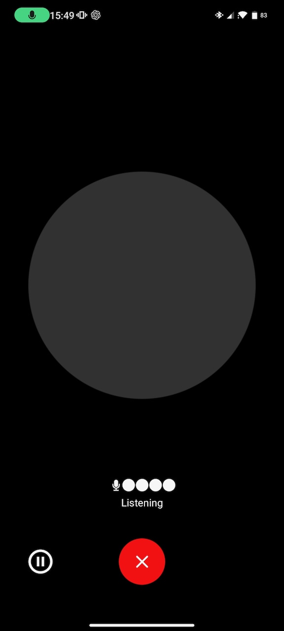 音声会話画面のUIはこんな感じ。一番左が聞き取り中、中央が応答中、右がChatGPTが回答中の画面です。