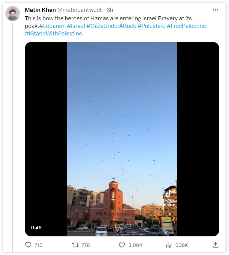 以下の2つは「ハマスの過激派がイスラエルに侵入する様子」とされたフェイク投稿です。サルダリザデ氏によれば、これはエジプトで撮影され、9月にTikTokに投稿されたものとのこと。