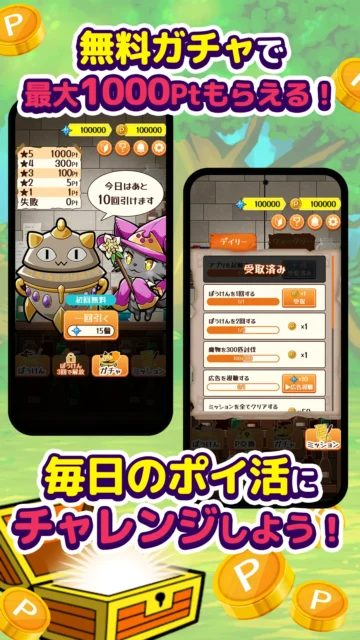 そんなかわいくて手軽なポイ活アプリ『ポイ活にゃんこと魔法のダンジョン』をぜひ一度試してみてください!